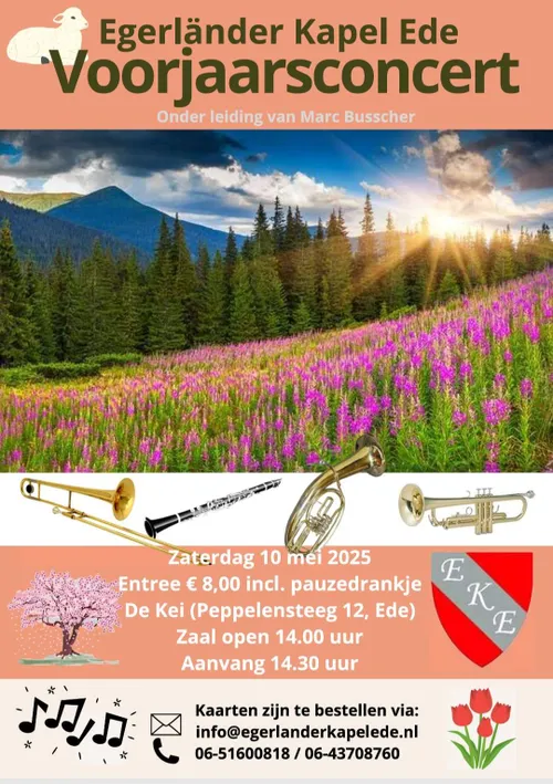 Het Voorjaarsconcert van de Egerländer Kapel Ede wordt gehouden op zaterdagmiddag 10 mei 2025.