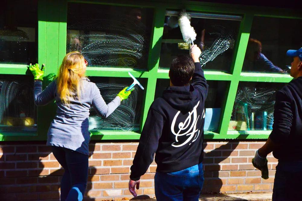 Na een gezamenlijke start en een echte theater warming-up ging iedereen aan de gang. Nieuwe vloerbedekking, ramen lappen, snoeien, plantjes poten en alle ruimtes schoonmaken. Alles wat gedaan moest worden is opgepakt.