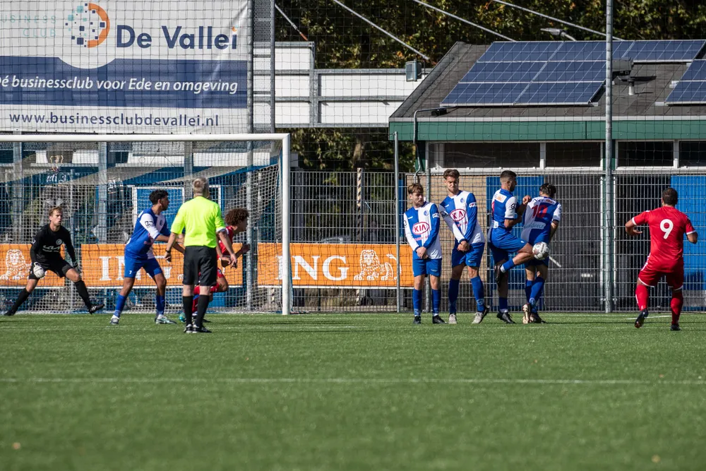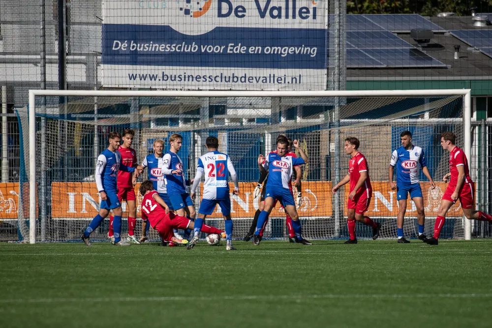 DTS Ede heeft haar eerste competitiepunt voor dit seizoen binnen. In eigen huis moest het in de eerste helft de voorsprong nog laten aan de gasten van BFC, maar na de rust herpakten de Edenaren zich en wist Arthur Gatsjatrian, vanuit de rebound, de blauwwitten op gelijke hoogte te brengen. Verdediger Chiel Willems moest het duel voortijdig geblesseerd verlaten.